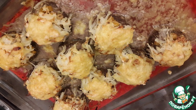 7. На лепёшки сверху выложить слой грибов с луком.