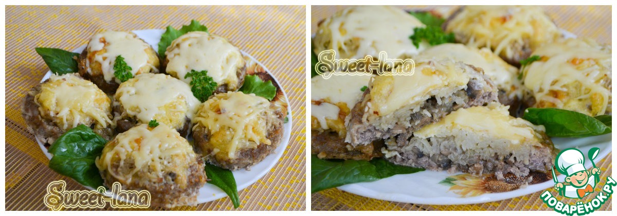 6. Из фарша сформировать круглые лепёшки, можно выложить фарш с помощью салатного кольца.