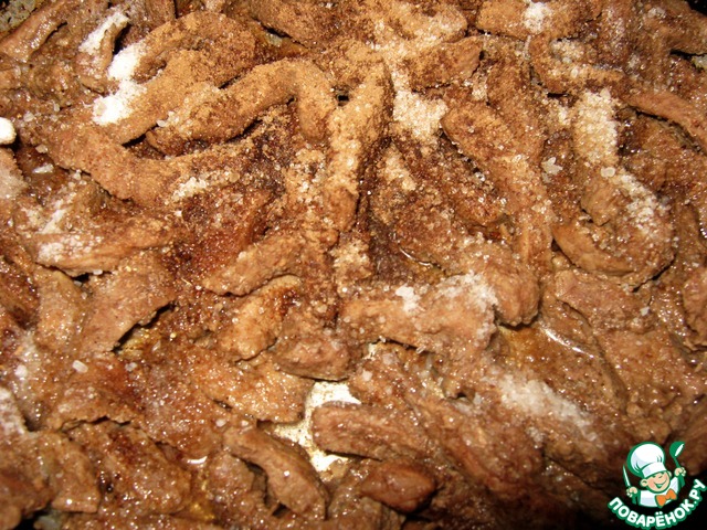 За пять минут до готовности добавить соль, сахар, корицу. Перемешать. Мясо готово. (Можно использовать свинину).