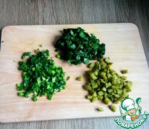 Режем шпинат, огурец, зеленый лук.