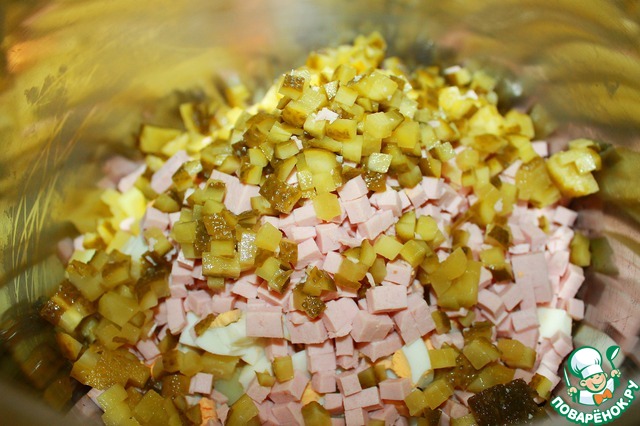 Но если добавить немного больше маринованных огурцов, чем заявлено в рецепте, то кисло- сладкие яблоки без лимонного сока будут очень кстати.