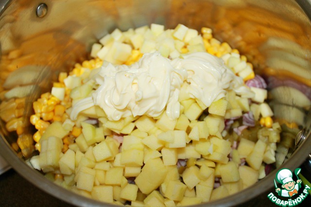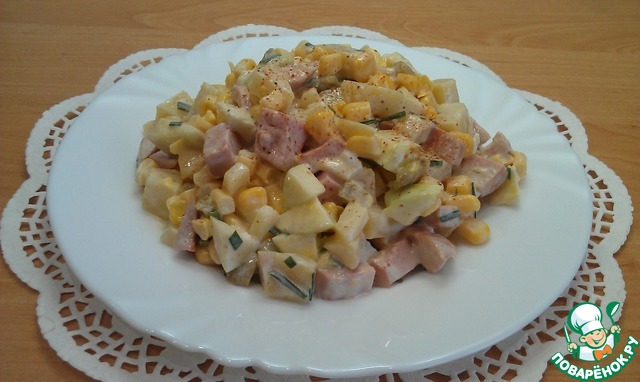 Описание: У немцев существует большое количество вариаций картофельного салата. Сегодня я хочу предложить салат с яблоками, кукурузой, колбасой и маринованными огурцами. Этим рецептом поделилась с моей свекровью её коллега-немка. Свекровь же, в свою очередь, угостила меня. На сайте похожего рецепта не нашла, а по сему охотно делюсь.