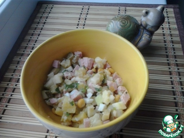 Кстати, давно не беру колбасу. В этот салат пошла свинина, сваренная в луковой шелухе.