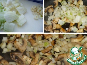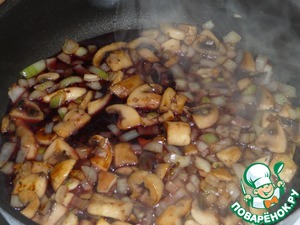 Измельчить лук и чеснок, добавить их к грибам. Обжаривать несколько минут.