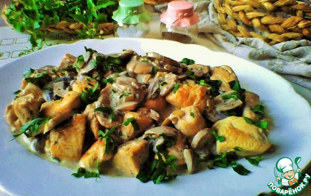 Курица с грибами под изумительным соусом из вина, сливок и лука. Использовать можно, как самостоятельное блюдо или подавать с вашим любимым гарниром.