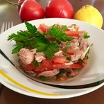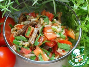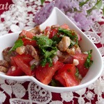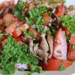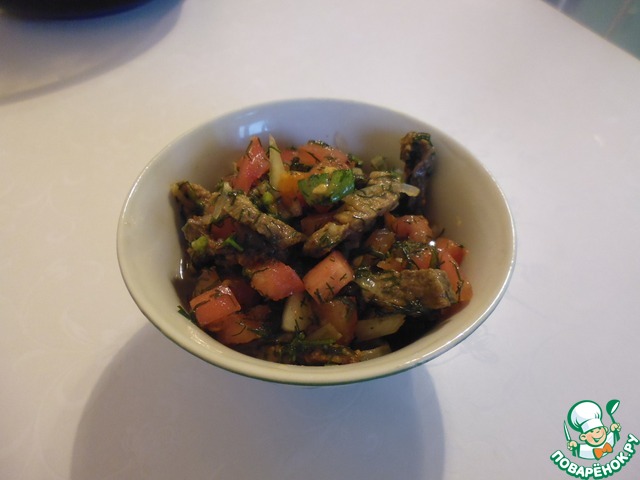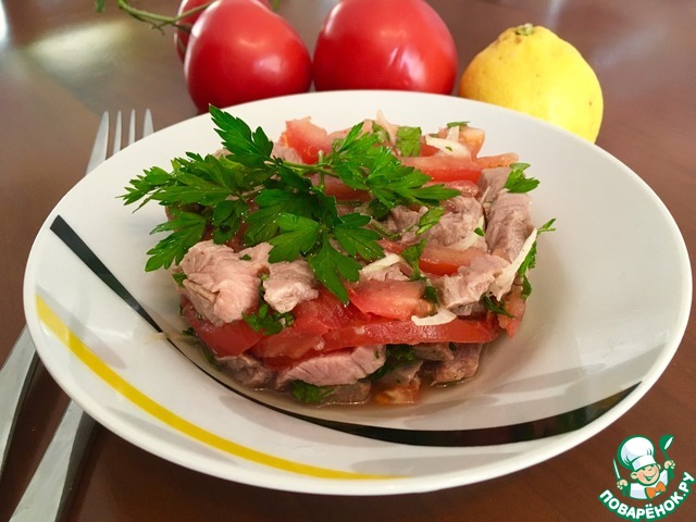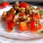 Этот салат я открыла для себя совсем недавно на одном из форумов. Затем смотрела способ приготовления на различных кулинарных сайтах, здесь помидорный салат с таким названием не обнаружила, поэтому решила поделиться и проиллюстрировать рецепт. Я подкорректировала пару ингридиентов, которые были указаны в оригинале, но и так вышло довольно вкусно!