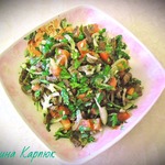 Тщательно перемешать, сбрызнуть лимоном. На этом этапе я салат разделяю на 2 части. В одну часть добавляю петрушку, во вторую кинзу, т. к. вкусы в семье разделяются.