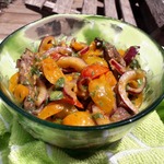[+5]Но вот с настойкой в холодильнике-немножко проблема,у меня масло растительное=оливковое,не покупное,саможатое,оно в холодильнике "замерзает",да и говядина была мраморная-тоже жирок затвердел. И поэтому ,когда я вынула салат из холодильника,застывшие ингредиенты выглядели не презентабельно и вкусу тоже мешали. Был проведён эксперимент,часть салата оставила "размораживаться" на столе,часть нагрела в микро. Разницы замеченно не было.