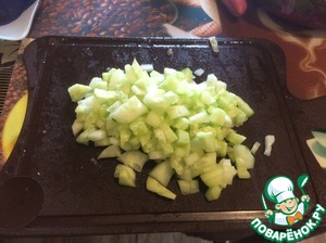 2. Нарезать мелкими кубиками карбонад (или ветчину).