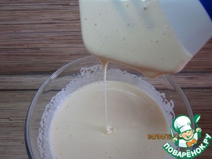 Остывшую смесь добавляем в несколько заходов к маслу. Масло и яично-молочная смесь обязательно должны быть одинаковой комнатной температуры. Хорошо взбиваем. -