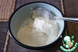 В отдельной посуде смешать 3 полные, с горочкой, ст. л, сметаны и примерно 2 полные ст. л. муки.