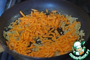 Лук спассеровать на растительном или сливочном масле, добавить морковь и пассеровать до мягкости.