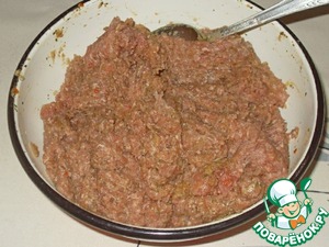 В фарш добавить соль, перец, приправу для фарша и яйцо. Хорошо вымесить и отбить. Убрать на холод на полчаса-час.