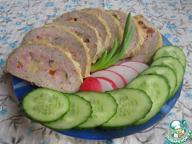 Мясной рулет с ветчиной и сыром