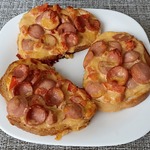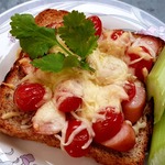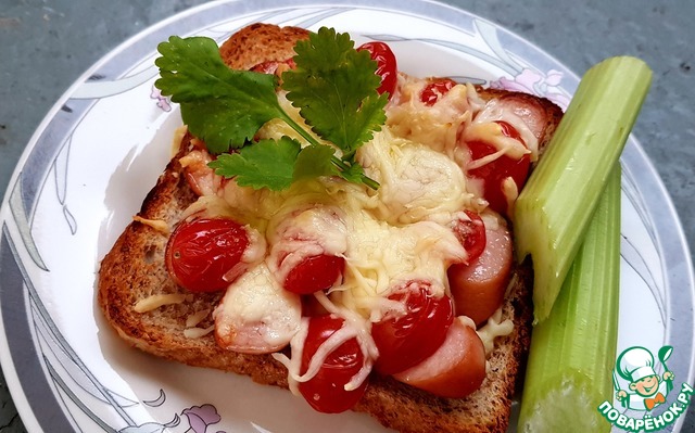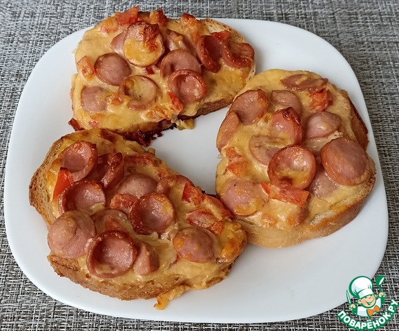 Массу выложить на хлеб, запекать в духовке при 180*С 15 мин.