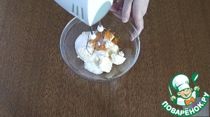 Масло, сахар, тертую цедру, соль, ванильный сахар растереть миксером.