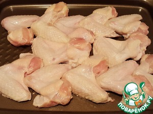 Включить разогрев духовки 200°. Вымыть и обсушить крылья. Выложить на антипригарный противень.