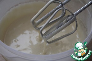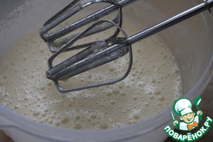 Тем временем взбить яйца с сахаром (я положила немного меньше, чем указала автор) и солью до увеличения массы почти в 3 раза.