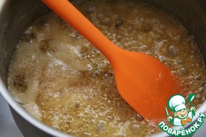Масло растопить с медом на плите и нагревать около 5 минут до золотистого цвета. Оставить остывать при комнатной температуре.
