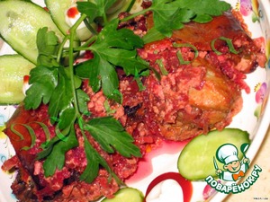 Поливаем сметанно-яблочным соусом, посыпаем мелко рубленной зеленью.