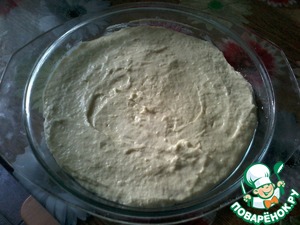 Жаропрочную форму смазываем маслом, выкладываем тесто (я разравниваю его мокрой ложкой).
