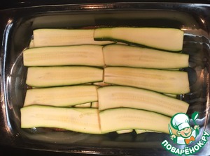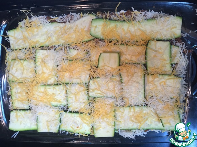 Верх закрываем оставшимися полосочками цуккини, можно красиво разложить как на картинке :) и сверху посыпать оставшимся сыром.