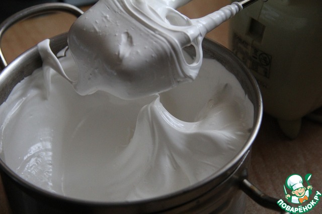 Взбивать белковую массу до температуры 55-60 градусов (до полного растворения сахара).