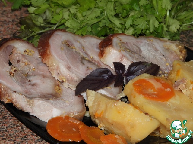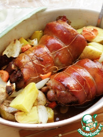 Ингредиенты для «Рулет из свиной рульки с овощами»: