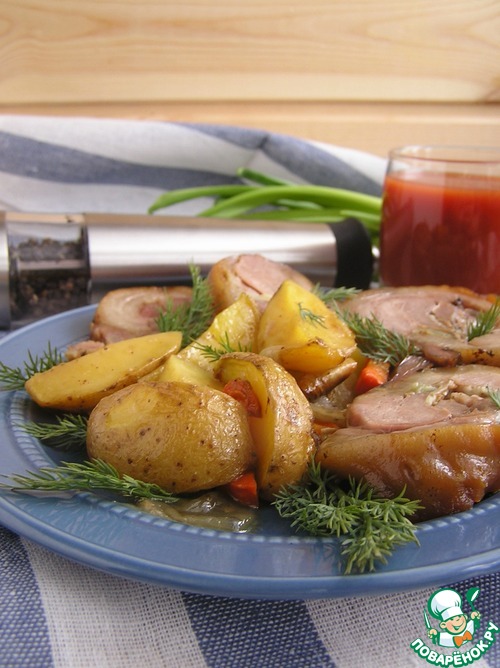 Нежная мягкая рулька, томленая в духовке с картошкой и луком – вкуснейший обед выходного дня. Все просто и недорого, нужно только время и желание.