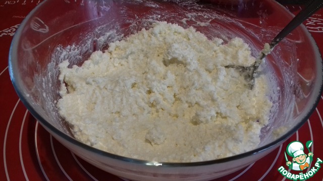 Непосредственно перед формовкой приготовить начинки. Для творожной начинки: творог размять, добавить сахар, ванилин, яичный желток, крахмал, тщательно перемешать.