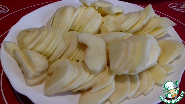 Для яблочной начинки яблоки очистить и тонко нарезать, сбрызнуть лимонным соком.
