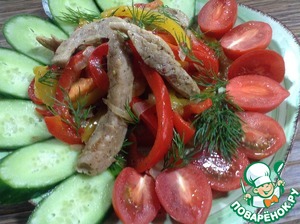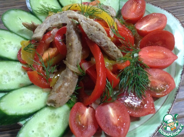 Вот и все. Блюдо готово. Подаем со свежими помидорами и огурцами. Очень вкусно еще с отварной картошечкой.