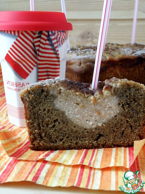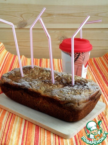Бывая в кафе, наш младший сын любит заказывать разный многослойный и многовкусовой кофе. Просто капучино или лате ему уже неинтересен. Непременно чтоб с сиропом, или зефирками, или вообще в смесь с шоколадом. Ну – молодость – что возьмешь. Сладкоежка и лакомка! Для него и испекла этот кекс, чтобы простой домашний кофе вкуснее был!