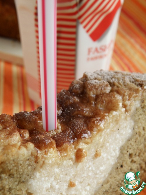 Посыпать творог маршмеллоу и выпекать в разогретой до 180 градусов духовке минут 40-45 – до готовности и сухой лучинки. Проверять следует нижнее кофейное тесто, а творожный слой может быть влажным – остынув, он уплотнится и слегка осядет.
