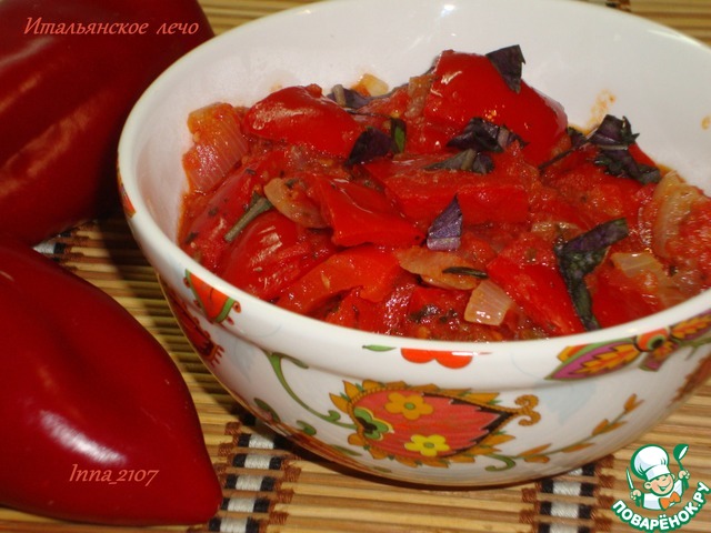 Предлагаю домашний рецепт итальянского лечо из красного перца. Готовится легко и быстро. Можно использовать как закуску, или в качестве гарнира к мясу. Вкусно как в горячем, так в остывшем виде.