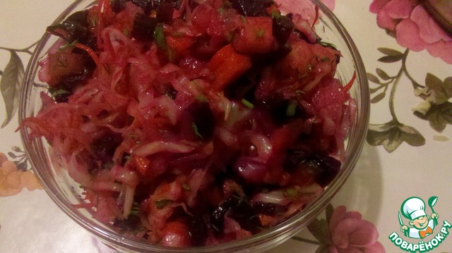 Во-вторых, не так просто, публикуя рецепт винегрета, не повториться. Юлии это удалось. Её рецепт отличается от всех имеющихся на сайте вариантов винегрета.