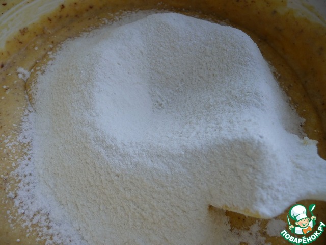 Добавить просеянный пудинг. Аккуратно перемешать лопаткой.