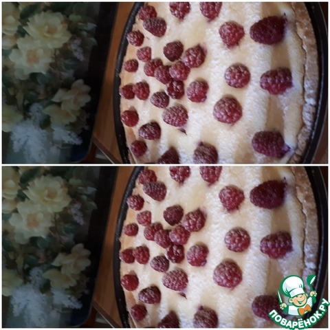 Песочный пирог с творогом и малиной