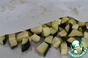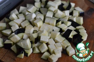 Баклажан нарезать на кусочки. Посолить слегка и оставить