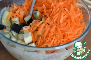 Добавить к смеси баклажан и морковь.