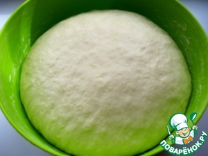Замесить тесто. Плотно накрыть и убрать на расстойку в тёплое место на 90 минут.