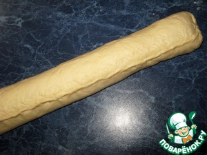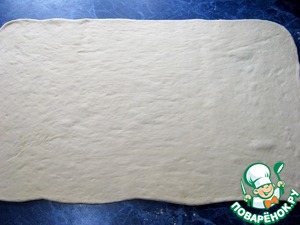 Тесто раскатать в пласт, со сторонами примерно 50 × 30 см.