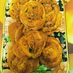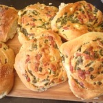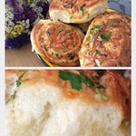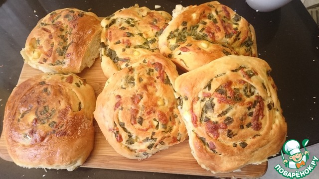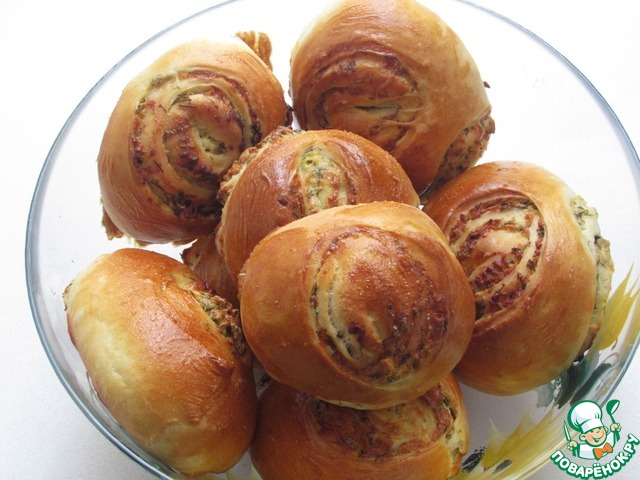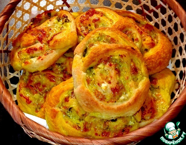 брокколи для красивого цвета начинки. Поднявшиеся булочки смазала