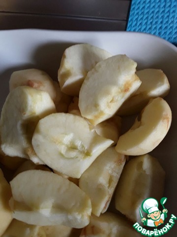 • Моем, чистим и нарезаем яблоки на четвертинки.