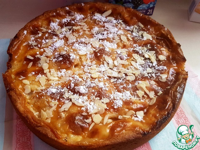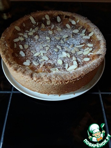 Благодарю за вкусный рецепт пирога. Очень красивый и нисколько не сомневаюсь, что ароматный!!! Украшение миндалём очень кстати. Нарядно. И ещё очень понравилось то, что серединка пирога как бы втянута во внутрь. Оригинально. Можно пофантазировать с джемом или глазурью.