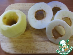 Яблоки очистить, удалить сердцевину с семенами и нарезать кружками.