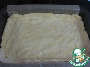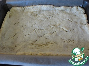 Через 20 минут достаем нашу основу ( я в этот раз торопилась, и почти не выдержала тесто на холоде, в результате чего во время выпечки оно начало вздуваться, пришлось срочно делать проколы вилкой)