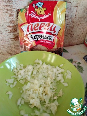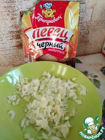 2) Мелко режем лук, чеснок пропускаем через пресс.