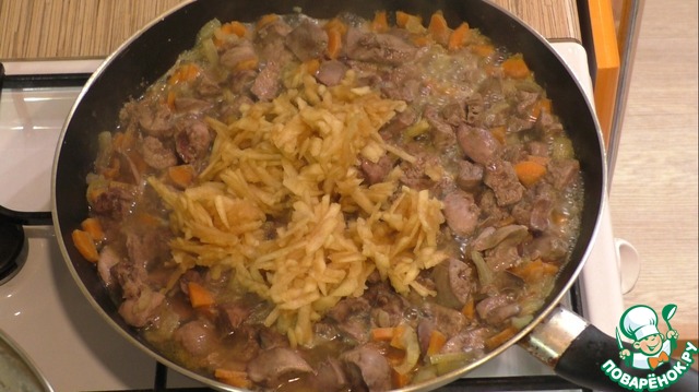 Рецепт «Тушеная куриная печень с яблоком»: