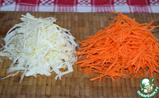 Морковь натереть на крупной терке или воспользоваться теркой для корейских салатов. -